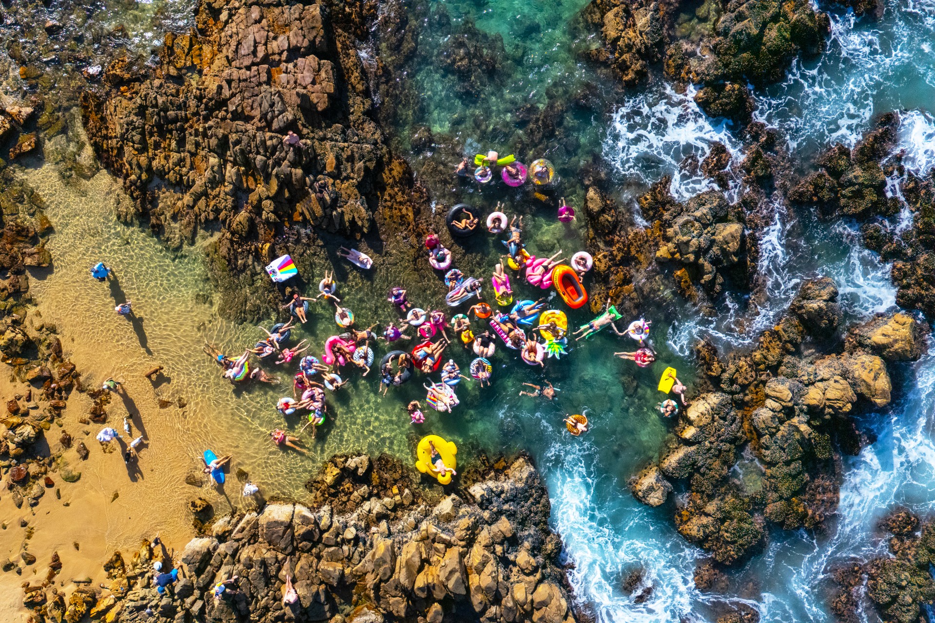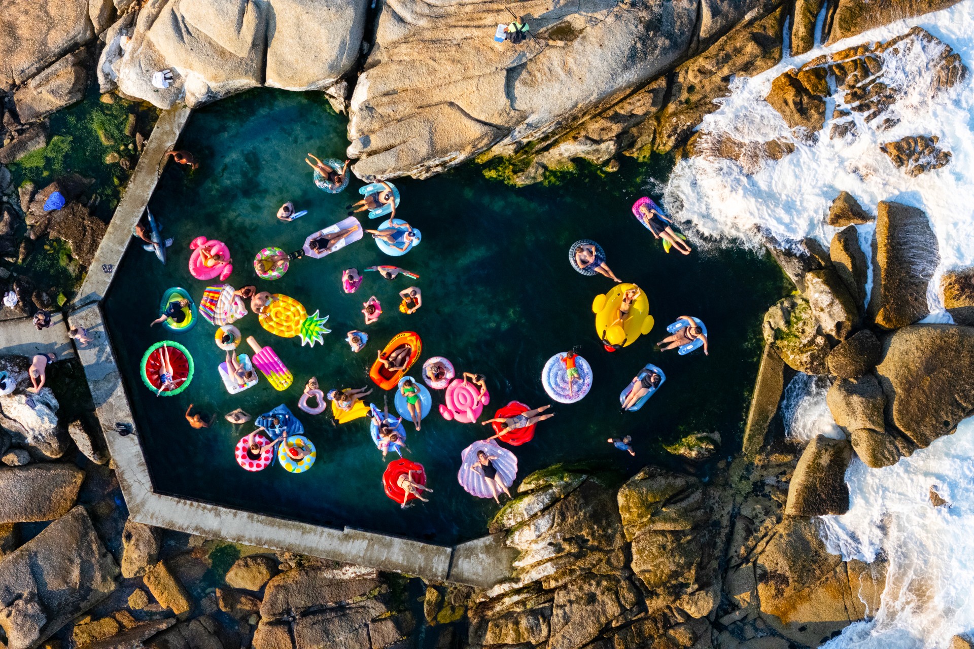 Pool Party Cape Town is a monthly social gathering at one of the many unique tidal pools in and around the Mother City, where friends and strangers alike, meet to float and create awareness to inspire positive change. Cape Town itself boasts 21 unique public tidal pools, offering some of the best (and coolest!) swimming spots in the world. These pools provide the perfect balance: the invigorating chill of the Atlantic Ocean with the safety of enclosed walls for protection against the crashing waves. Our aim is to celebrate these majestic tidal pools in a fun and safe way, and to reconnect people with nature.